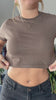 Descripción y Calce: Remera para mujer corta con largo entre la cintura y la cadera. Cuello redondo con ribb.