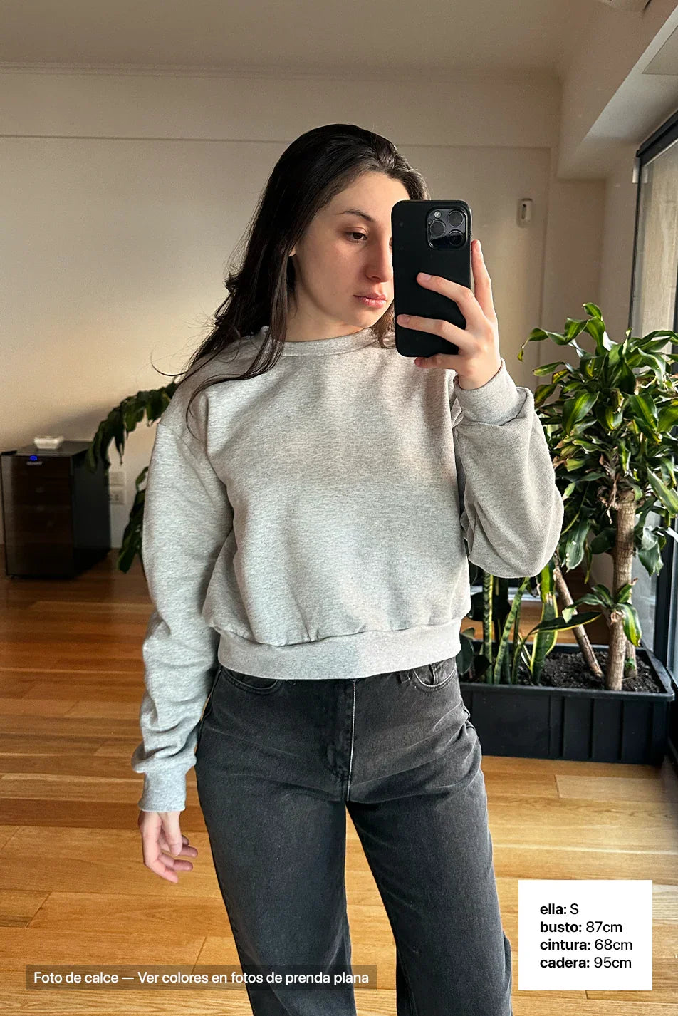 Descripción y Calce: Buzo de mujer con calce Boxy y cuello redondo con Ribb. Largo a la cadera.