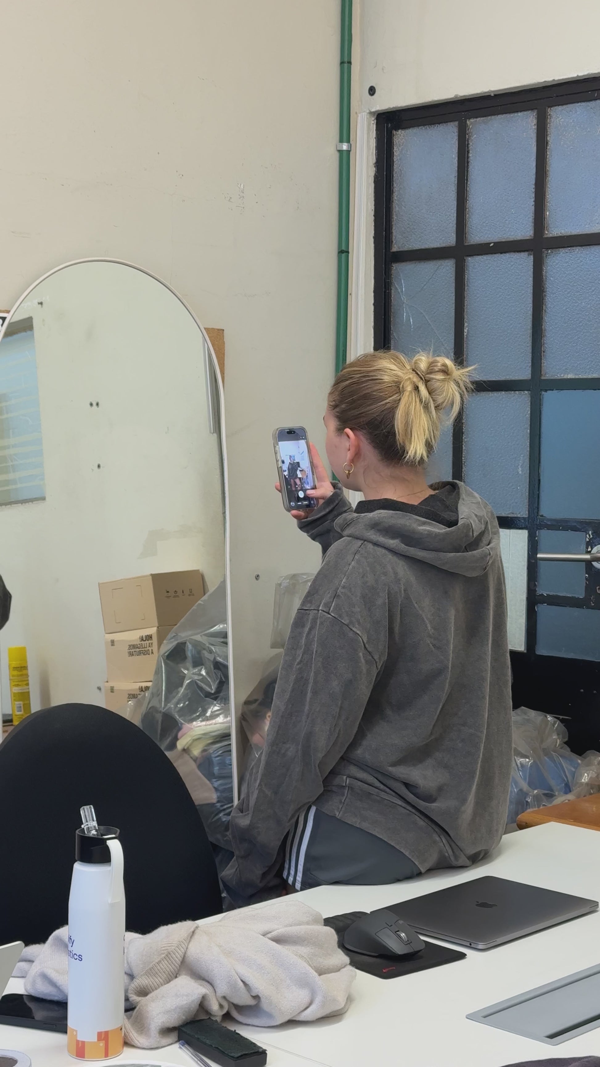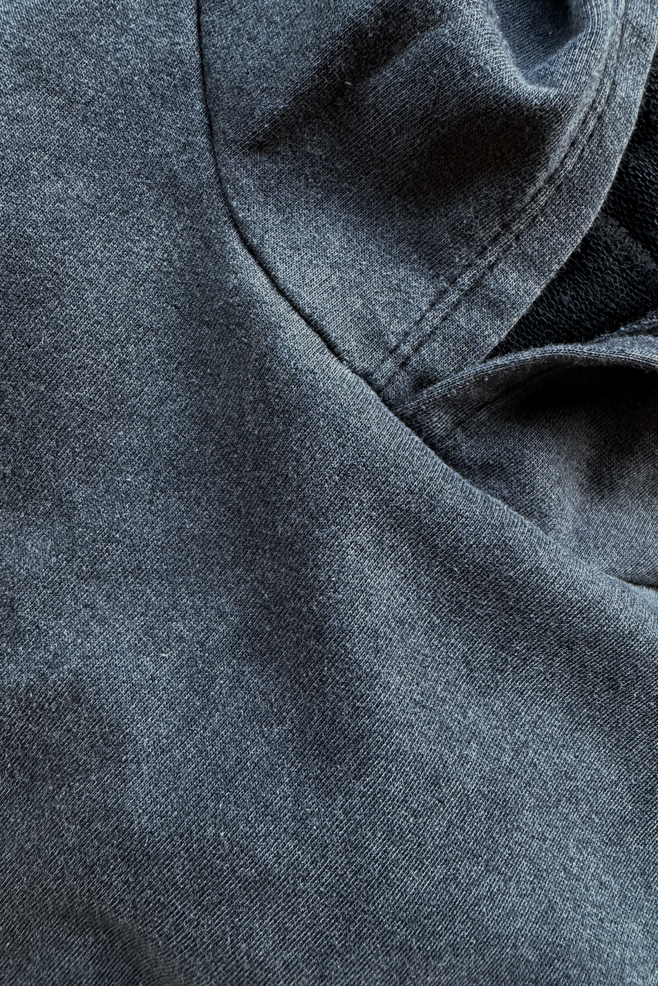 Descripción: Este modelo surgió como respuesta a un excedente de hoodies negros que necesitaban identidad.