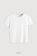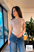Descripción y Calce: Remera corta de mujer al cuerpo. Largo levemente por encima de la cadera. Cuello de ribb.