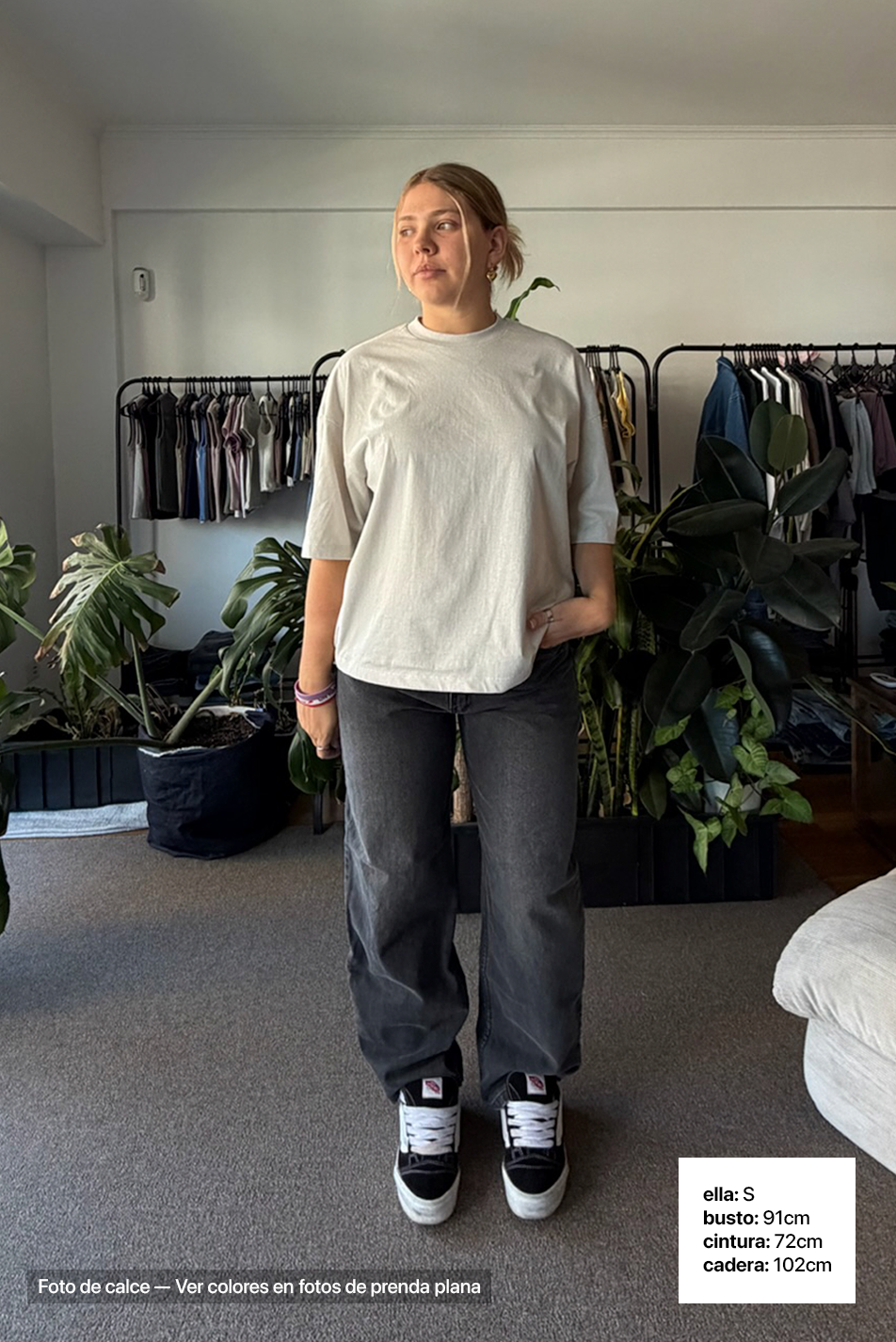 Descripcion y Calce: Remera unisex con calce "Boxy". Cuello redondo con ribb.